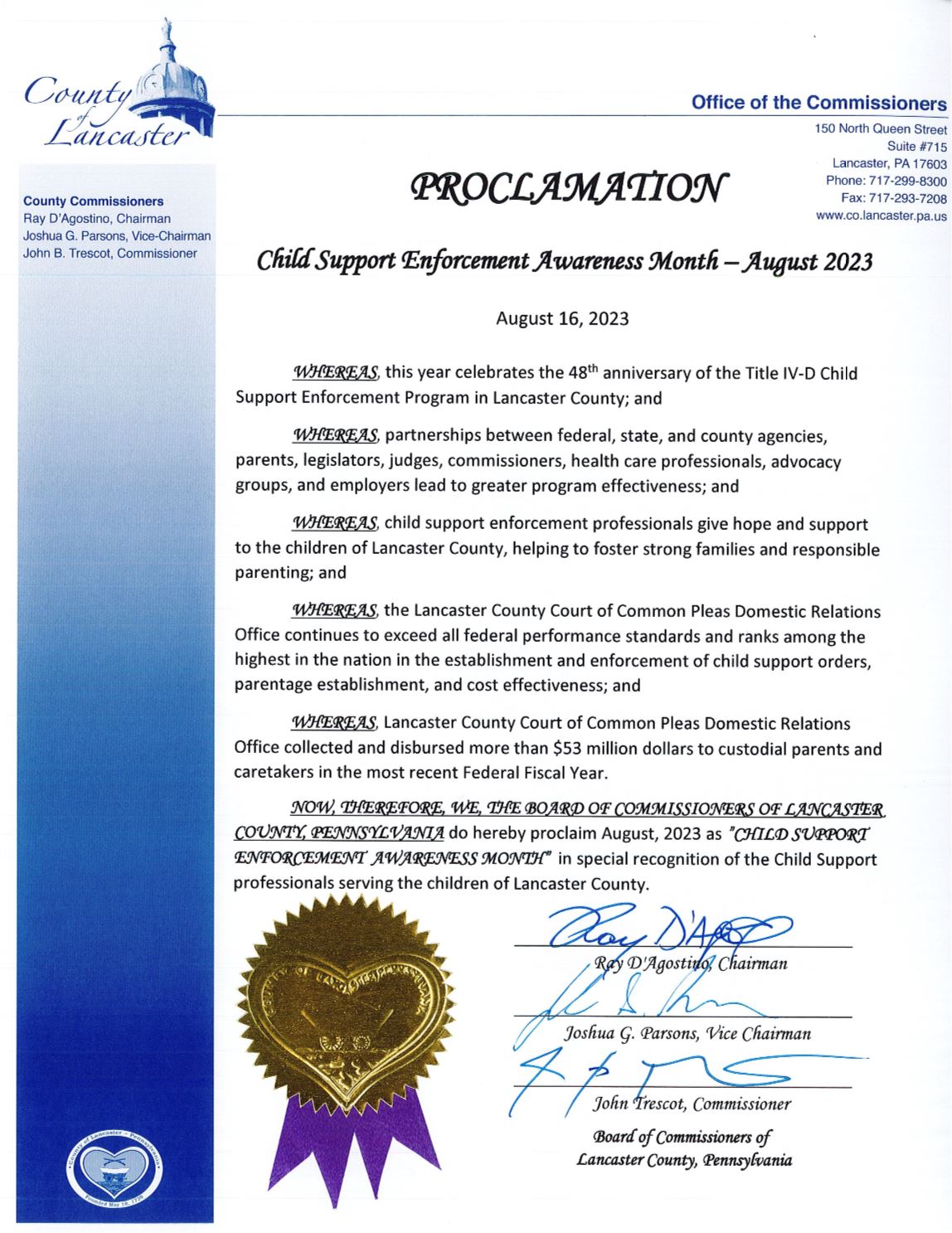 [ARCHIVED] Lancaster Recognizes Child Support Enforcement Awareness Month